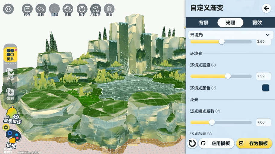 于是《蛋仔派对》想了个办法,在对移动端编辑器升级优化的同时,也同步上线了PC端的编辑器,实现双端编辑器并行,PC编辑器Eggitor支持Lua脚本、自定义模型、地形特效等高级功能,能让创作者有更大的发挥空间。