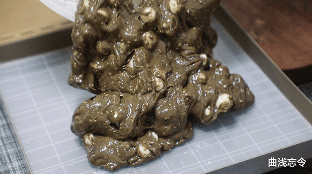 6.熬好的糖浆非常烫,倒入烤盘时借助刮刀,不建议用手去接触,避免烫伤。