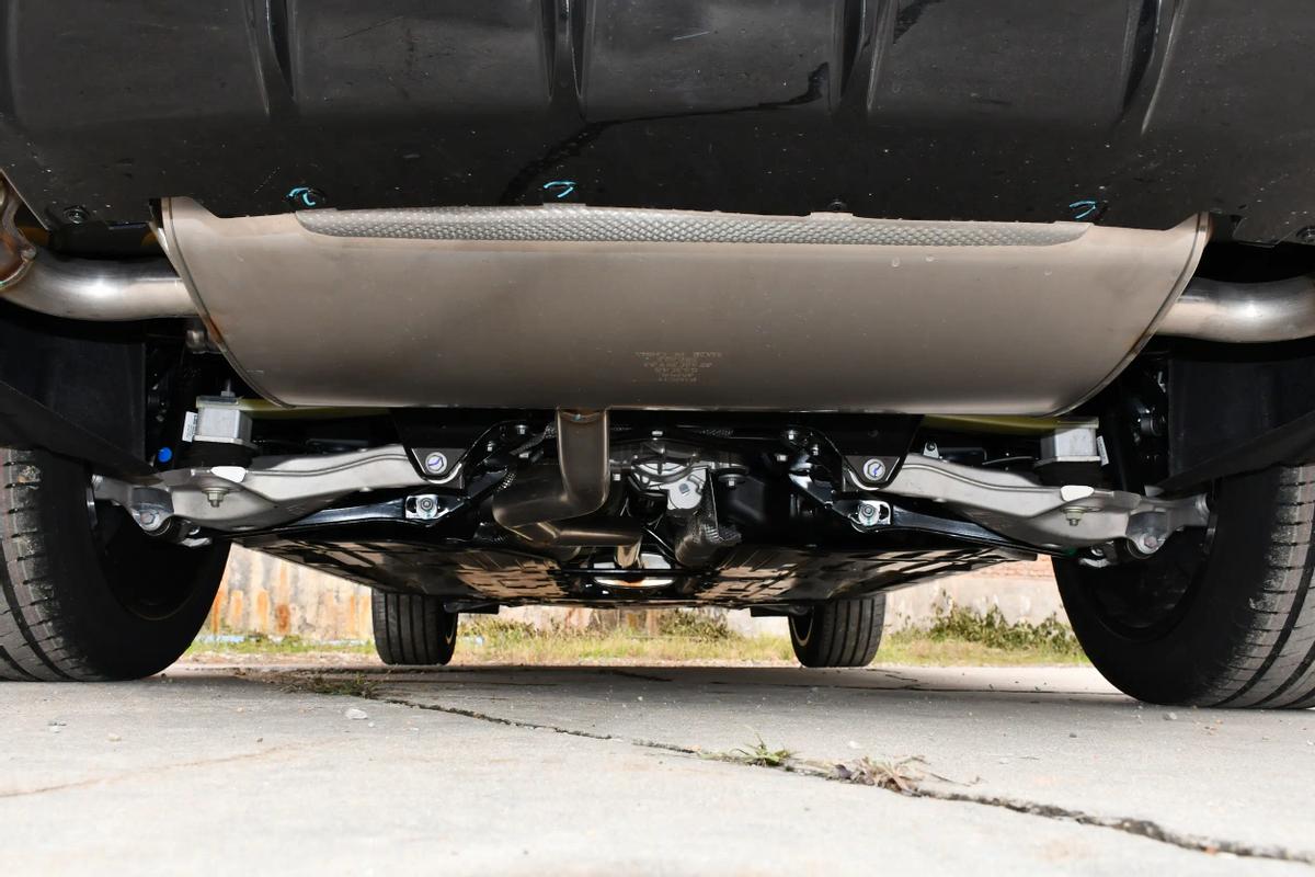 我特意在非铺装路面上切换到“沙地模式”,油门响应变得柔和,变速箱延迟换挡,配合博格华纳瀚德六代扭矩管理器,车轮几乎没有打滑,轻松通过。底盘方面,前双叉臂+后集成式多连杆独立悬架,铝制部件占比高达48%,再加上复合叶片弹簧“绿扁担”,过弯时侧倾控制得恰到好处,滤震效果也干净利落。