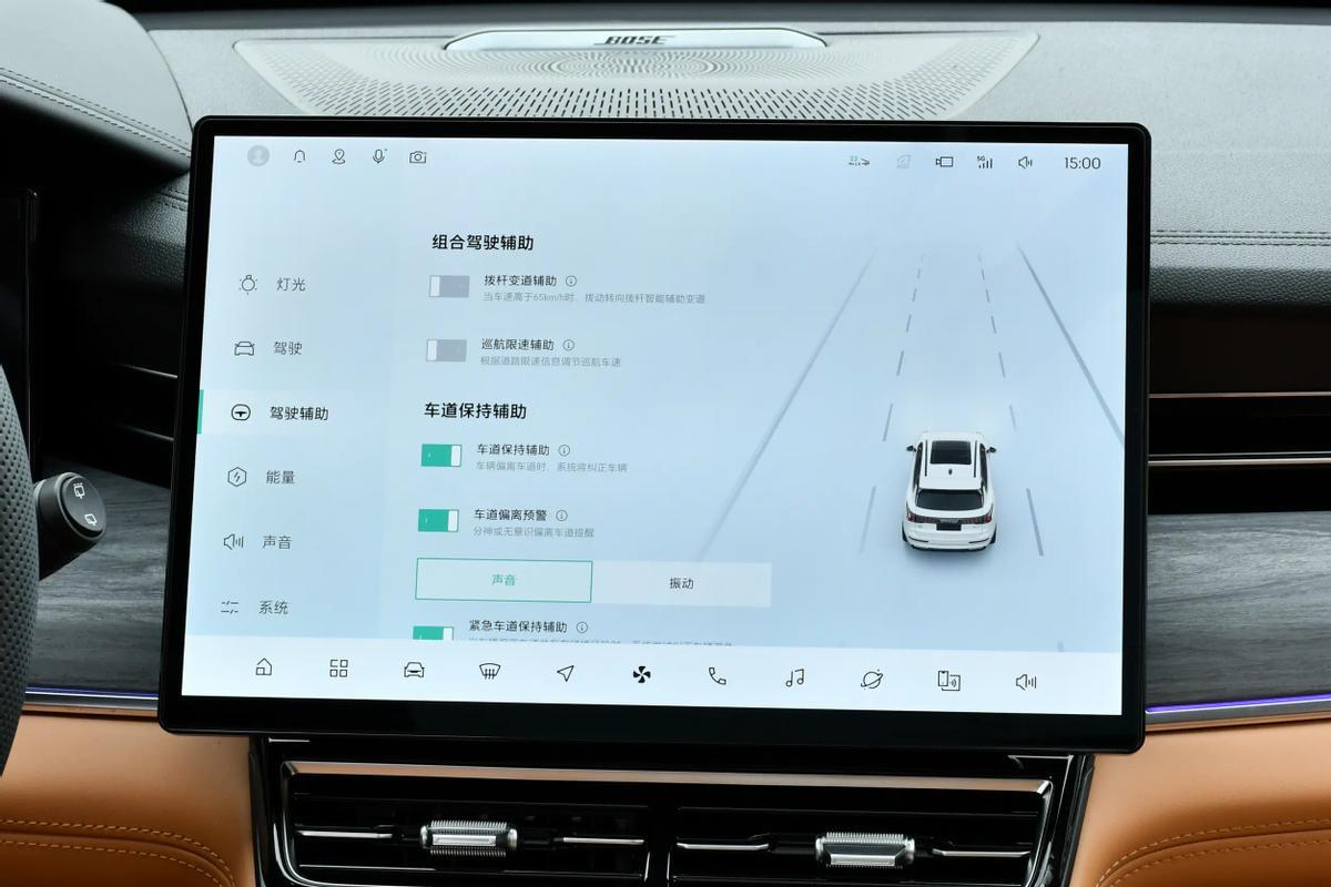 领克09的智能配置没有一味追求“黑科技”,而是更注重实用性。LYNK OS N智能座舱系统搭载8155芯片+5G网络,操作流畅。15.4英寸超清中控屏支持OTA升级。智能语音助手支持连续对话、可见即可说,识别率很高,开空调、调座椅、找导航都能快速响应。