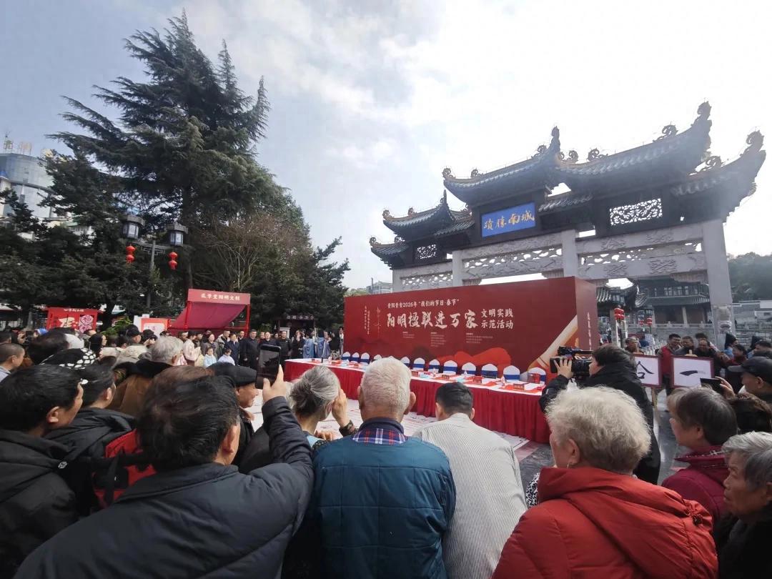 春节将至,年味渐浓。2月6日,贵阳贵安2026年“我们的节日·春节”——“阳明楹联进万家”文明实践示范活动在甲秀楼、孔学堂、阳明祠、贵阳市图书馆、中国阳明文化园、各区(市、县)新时代文明实践中心以及部分所(站)同步举办。活动以阳明心学思想精髓为内核,以“阳明楹联”为载体,推动贵阳贵安阳明文化创造性转化、创新性发展,为新春添彩,为文明赋能。