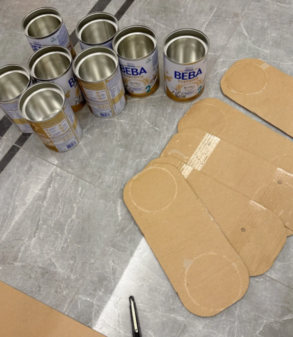 先准备好硬质壳+一些奶粉罐,硬质壳需要剪裁一下。