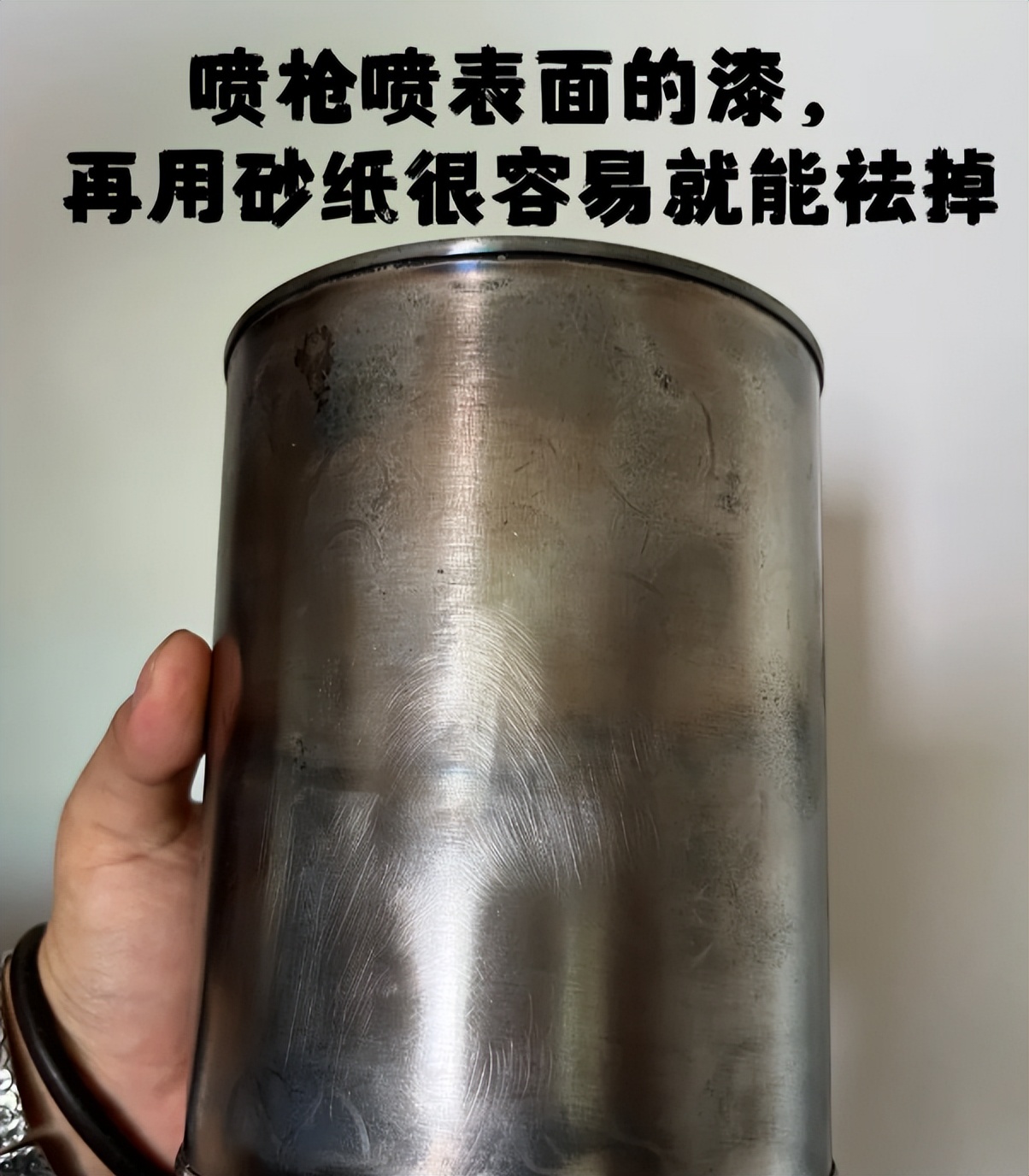 先把空奶粉罐顶部塑料部分去掉,在用喷枪喷一喷奶粉罐表面,然后用砂纸打磨一下,就可以把奶粉罐外面的图案去掉了。
