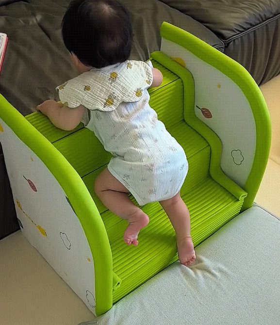 做好了之后,放在沙发旁边啊、床的旁边都很合适,宝宝可以上下爬来爬去。