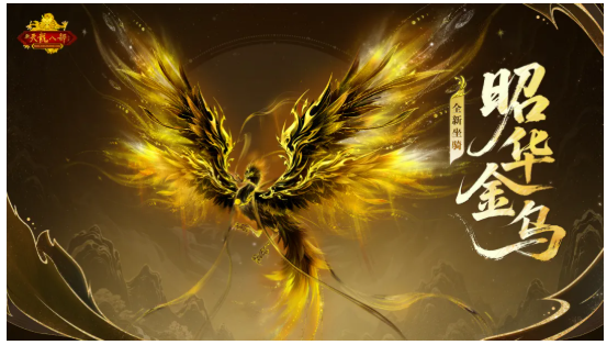 全新坐骑"昭华金乌"的设计堪称神来之笔。设计师将上古神鸟的传说完美具象化,金色的羽毛在阳光下闪耀着熔金般的光泽,每一片羽毛的纹理都清晰可见。当它展翅飞翔时,尾羽划出的流光轨迹,让人想起敦煌壁画中的飞天,既神圣又震撼。
