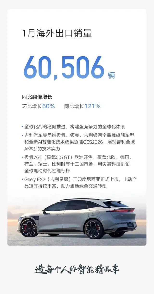 然后是海外市场,这部分简直是惊喜中的惊喜!2月海外出口6万辆,同比暴涨138%,直接翻了一倍还多,前两个月累计出口12万辆,同比增长129%。其实这增速,放眼整个中国车企行业内,都是顶流水平。