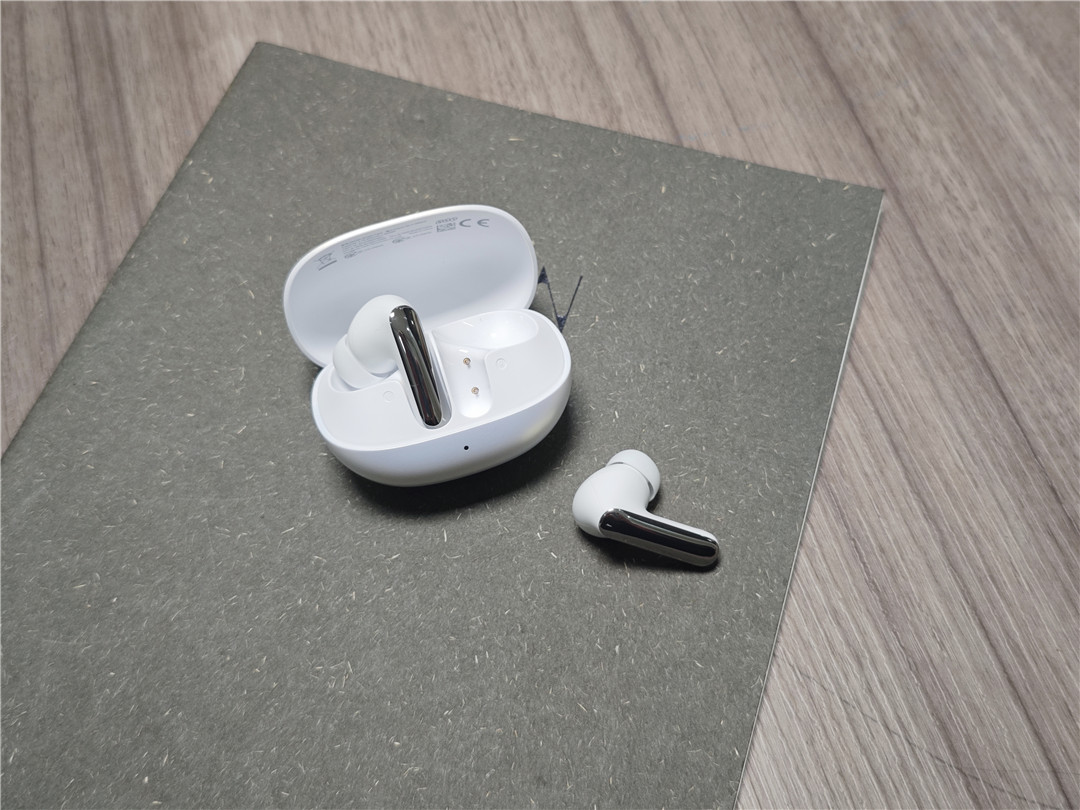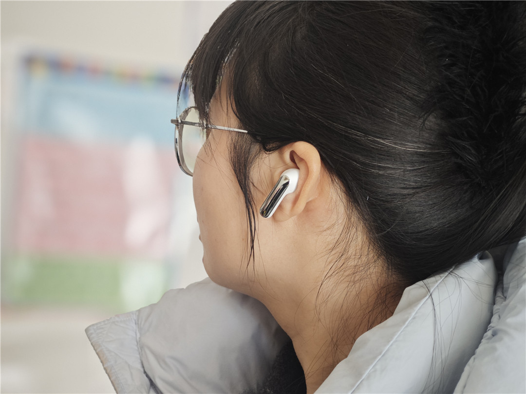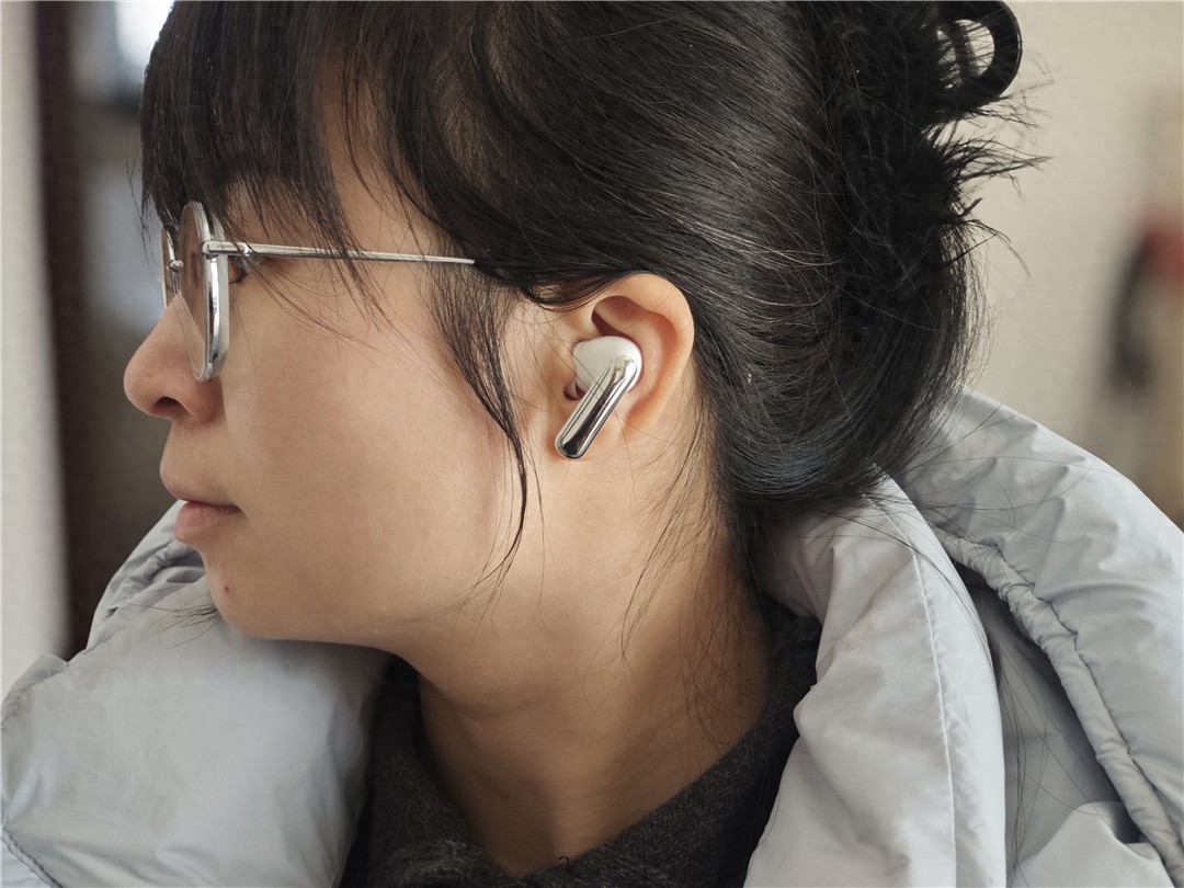 耳机本体的设计则兼顾了颜值与实用性,采用半入耳式造型,搭配柔软的硅胶耳帽,贴合耳道轮廓,佩戴时几乎没有异物感。耳机重量很轻,单只仅重 4.6g 左右,长时间佩戴(我最长连续戴了 3 小时)也不会觉得耳朵胀痛。耳帽的防滑设计做得不错,无论是通勤走路、挤地铁,还是日常运动,耳机都能牢牢固定在耳道里,不会轻易脱落。
