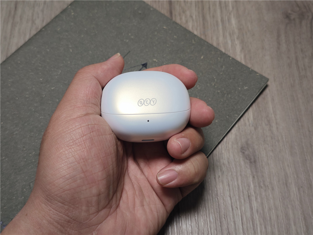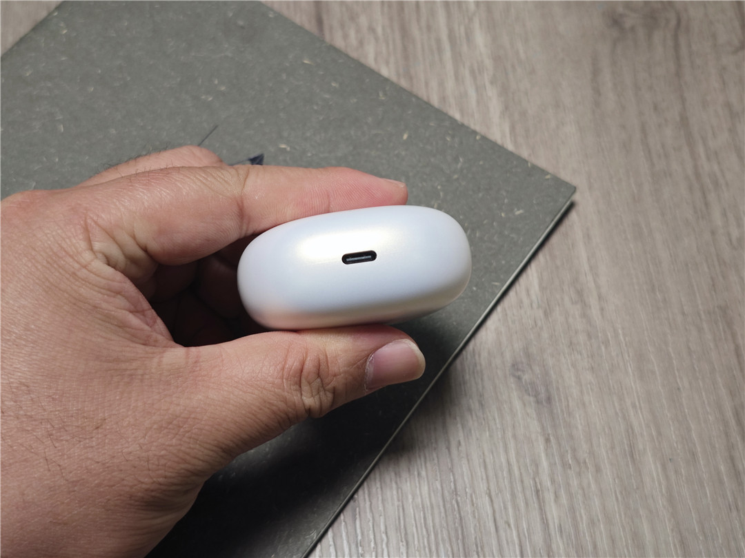 取出充电仓,第一眼就被它的小巧身材吸引。充电仓采用圆角矩形设计,单手就能轻松握持,放进牛仔裤口袋或随身小包里完全不占地儿。外壳手感细腻,我入手的是经典白色款,简约百搭,日常搭配各种穿搭都不违和。