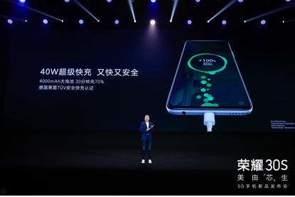 5G高速网络对智能机续航能力提出严峻考验。荣耀30S搭载有4000mAh大容量电池,足够满足一整天的日常使用所需。同时,荣耀30S标配莱茵认证40W超级快充,充电更安全,30分钟便能充到70%电量,续航持久在线,让用户可以就此告别续航焦虑,尽享5G时代。