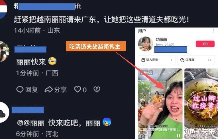 于是有网友喊话:“赶紧把越南丽丽请来广东,让她把这些清道夫都吃光!”