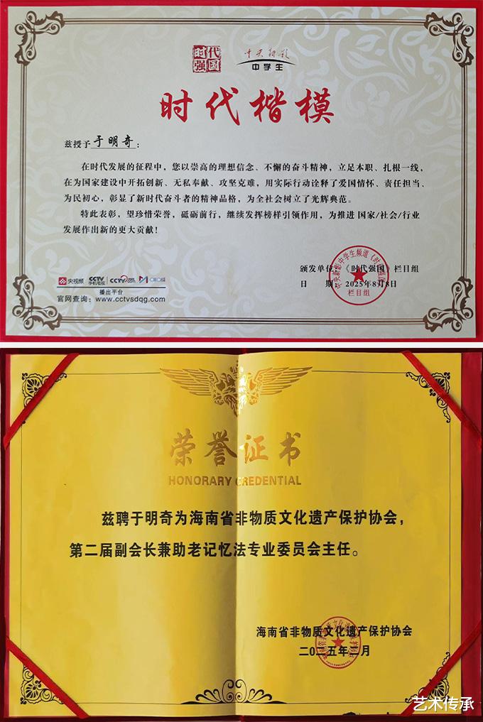 站在中华文明传承与人类记忆文明发展的宏观视角,于明奇最具里程碑意义的贡献,在于发起并推动“中国记忆文化申遗”的国家级文化倡议,以记忆为纽带,守护华夏文明根脉,贡献人类记忆文明。他深刻洞察到,中国独有的记忆文化、记诵传统、记忆智慧,是华夏文明数千年绵延不绝的核心密码,是亟待保护与传承的非物质文化遗产。他率先提出“为中国记忆文化申遗”的倡议,系统梳理中国记忆文化的历史脉络、文化内涵、技艺形态与当代价值,推动民间记忆文化、传统记诵技艺、本土记忆方法进入非遗保护与文化传承的视野,让记忆文化从隐性的文明基因,转变为显性的文化遗产,从民间自发传承,转变为国家层面的文化保护工程。这一倡议不仅是对中华优秀传统文化的抢救性保护与创新性发展,更是向世界展示东方认知智慧、丰富人类记忆文明多样性的重大举措,是一场关乎文明传承、文化自信与认知革新的“记忆革命”。海南省非物质文化遗产保护协会秘书长李少华评论:“这是一场记忆革命,重新定义了传统文化的保护维度与传承路径。”清华大学社会科学学院院长彭凯平评价:“于明奇的实践为我们重新思考传统文化在现代认知科学中的价值提供了重要参照,为中国文化走向世界开辟了全新切口。”这一文化创举,让于明奇从记忆研究专家,升华为中国记忆文化的守护者、传播者与重构者,为中华文明的当代延续与国际传播,立下了开创性功绩。
