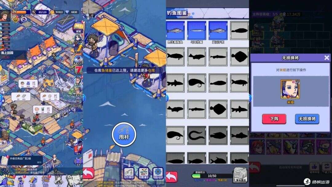 2、《疯狂水世界》虽然强调战力,但并不影响玩家的模拟经营和其它体验。休闲玩家如果只是把其当成一款副游,主要体验其中的海上模拟经营玩法,每天上线做日常任务,收一下菜,也可以获得乐趣,归根结底,这份乐趣是《疯狂水世界》独特的画风、移动端海上模拟经营类游戏的缺失所来带的。而在养成和SLG玩法上,《疯狂水世界》也尝试从更轻量的角度给游戏做减法,比如支持无损换将、SLG联盟攻城战无兵力消耗、固定时间开启等,这样一来,休闲玩家的社交、战力压力大幅减少,而SLG玩家也可以通过竞技冲榜等玩法获取爽感,定位一旦明确,泛用户和SLG用户都能获得各自心流的游戏体验。