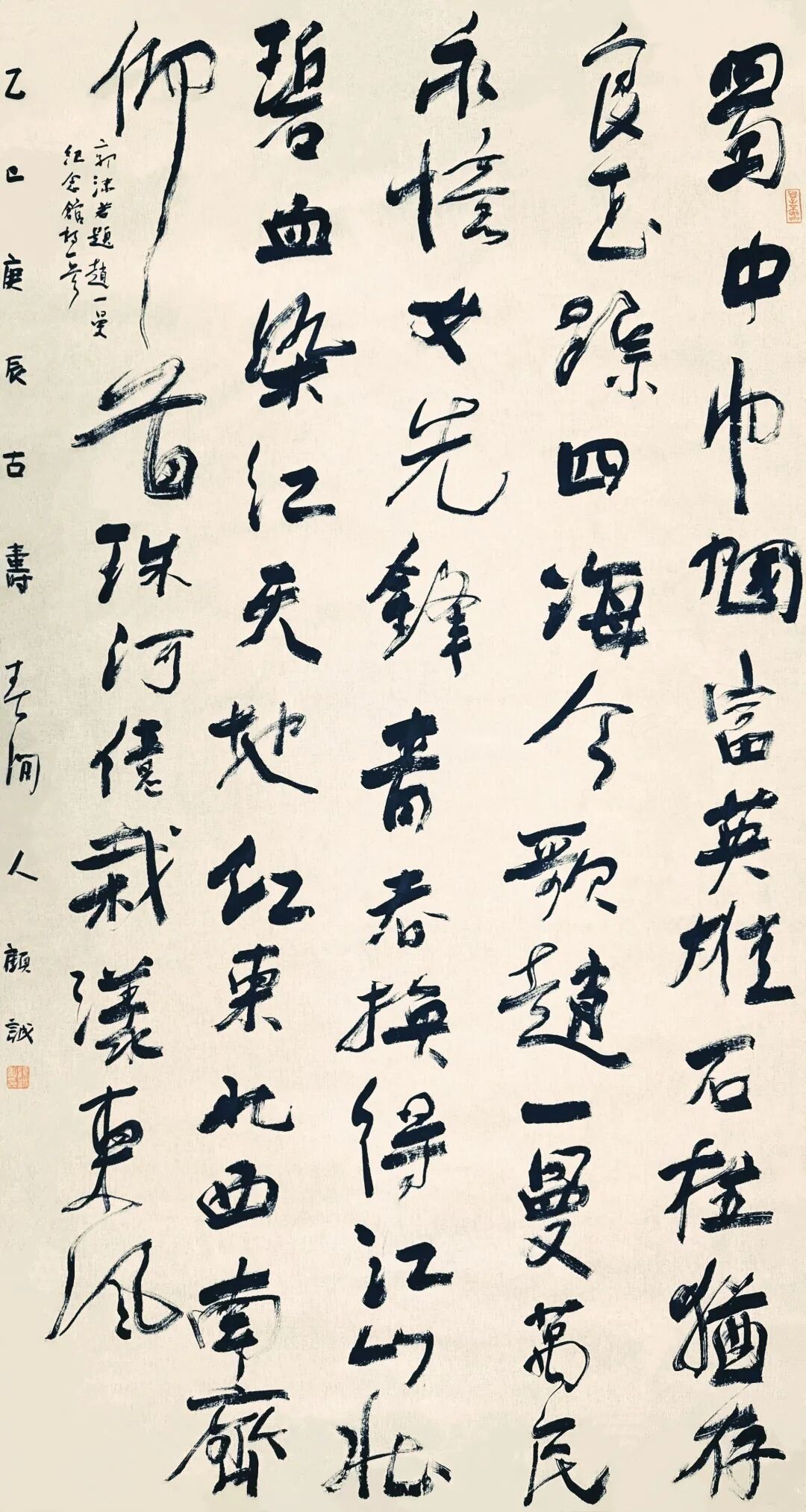 顾诚,四十年笔耕不辍,被评为“百年百家”艺术家称号。作品被部分博物馆、美术馆等机构收藏。获首届“爱莲杯”全国书法大展一等奖、第五届华夏之星中国书画大展银奖、庆祝全国总工会成立七十周年全国书画摄影艺术大展一等奖、95三国文化全国书画篆刻艺术大展铜奖、第十七届中国重阳书画摄影展重阳奖、第七届中国书坛中青年“百强榜”最佳作品奖。顾诚的书法创作融合古意与时代风尚,五体兼修,尤善行草书,作品兼具碑派的沉雄与帖派的灵动,在笔墨情调与章法布局上展现出独特追求,得古神髓而不拘泥表象形似,呈现出精逸多变的艺术风貌。