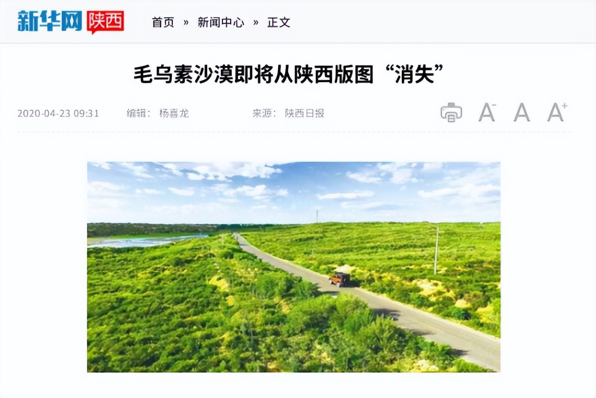 2020年4月,陕西省林业局宣布了个令人振奋的消息:榆林沙化土地治理率已达93.24%。这意味着毛乌素沙漠即将成为我国第一个被“消灭”的沙漠。