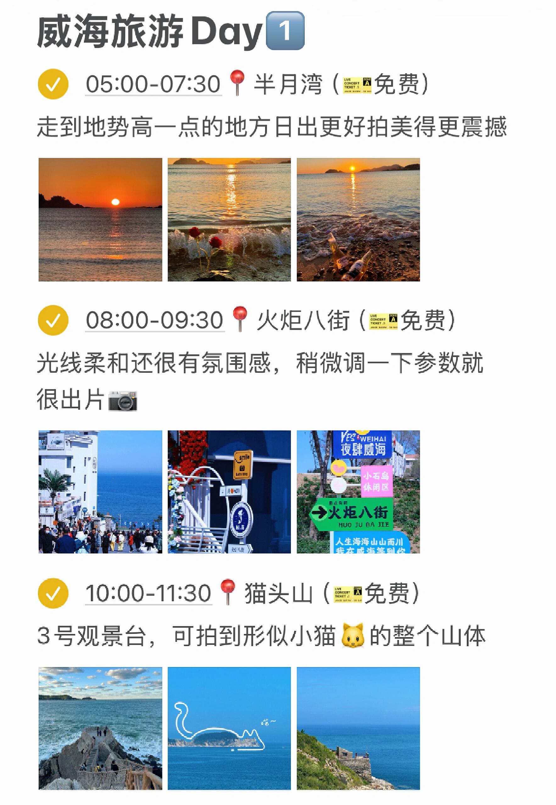 打算去威海的姐妹们😘!我特意为大家整理了一份超实用的威海旅游指南,里面包含游玩攻略和注意要点,照着这份攻略玩,准能省心又尽兴✌!