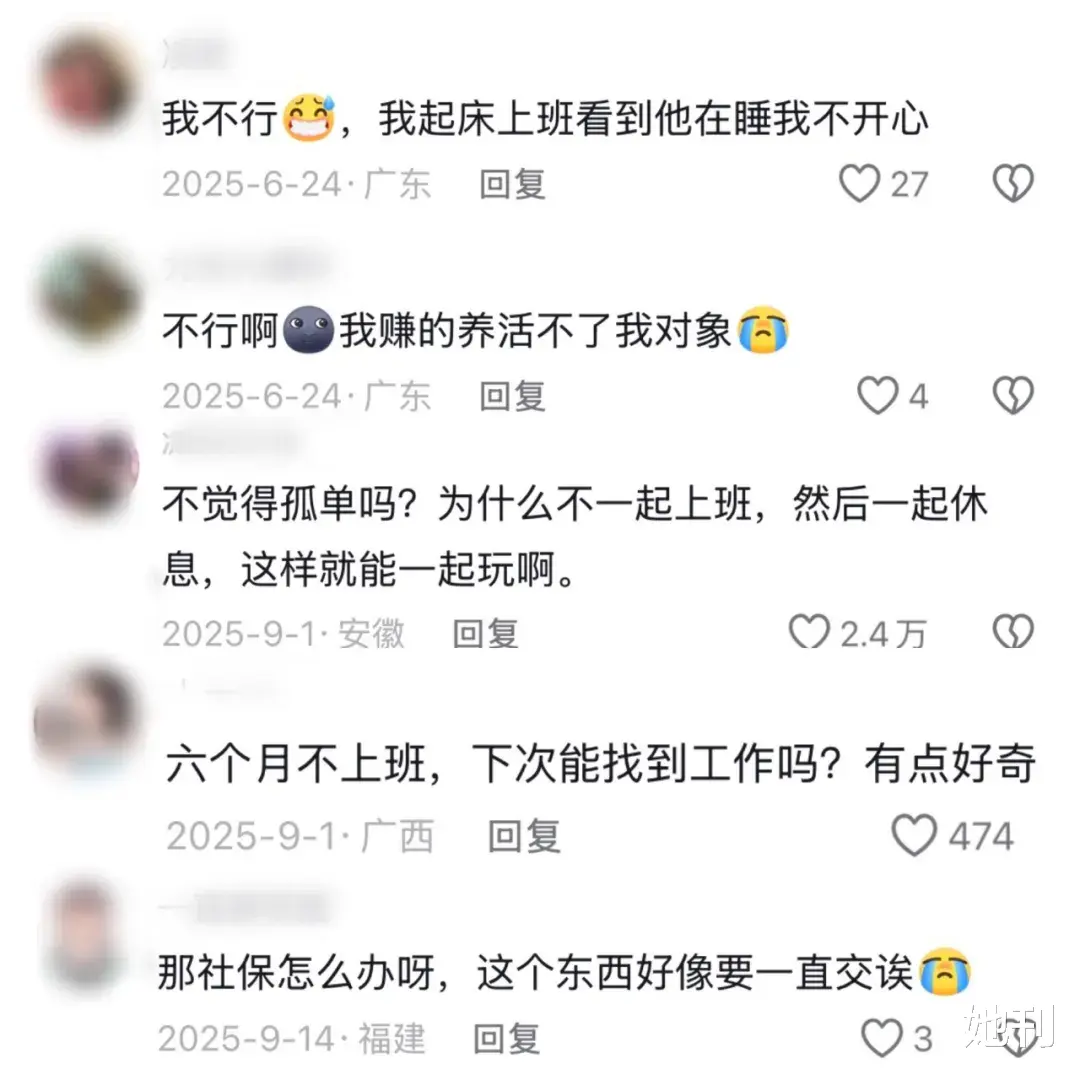 轮流上班半年后,对于“躺平”6个月、容光焕发的关关,大多数网友都是羡慕的。