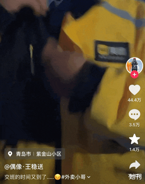 在青岛,有保安、外卖员拍摄了互换工种的视频。