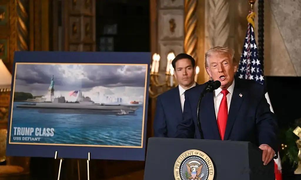 12月22日,特朗普在佛罗里达州的海湖庄园宣布美国海军要建造新一代战舰,命名为“特朗普级”,首舰叫“挑战者号”。展示概念图,强调体积大、速度快、火力强上百倍,第一批建造两艘,目标扩充到20到25艘。他称之为“黄金舰队”,要配备高超音速武器、高能激光以及核武装海基巡航导弹,他强调美国本土造船、促使美国回归造船大国,已经启动与造船厂的谈判,带着工业复兴的叙事。