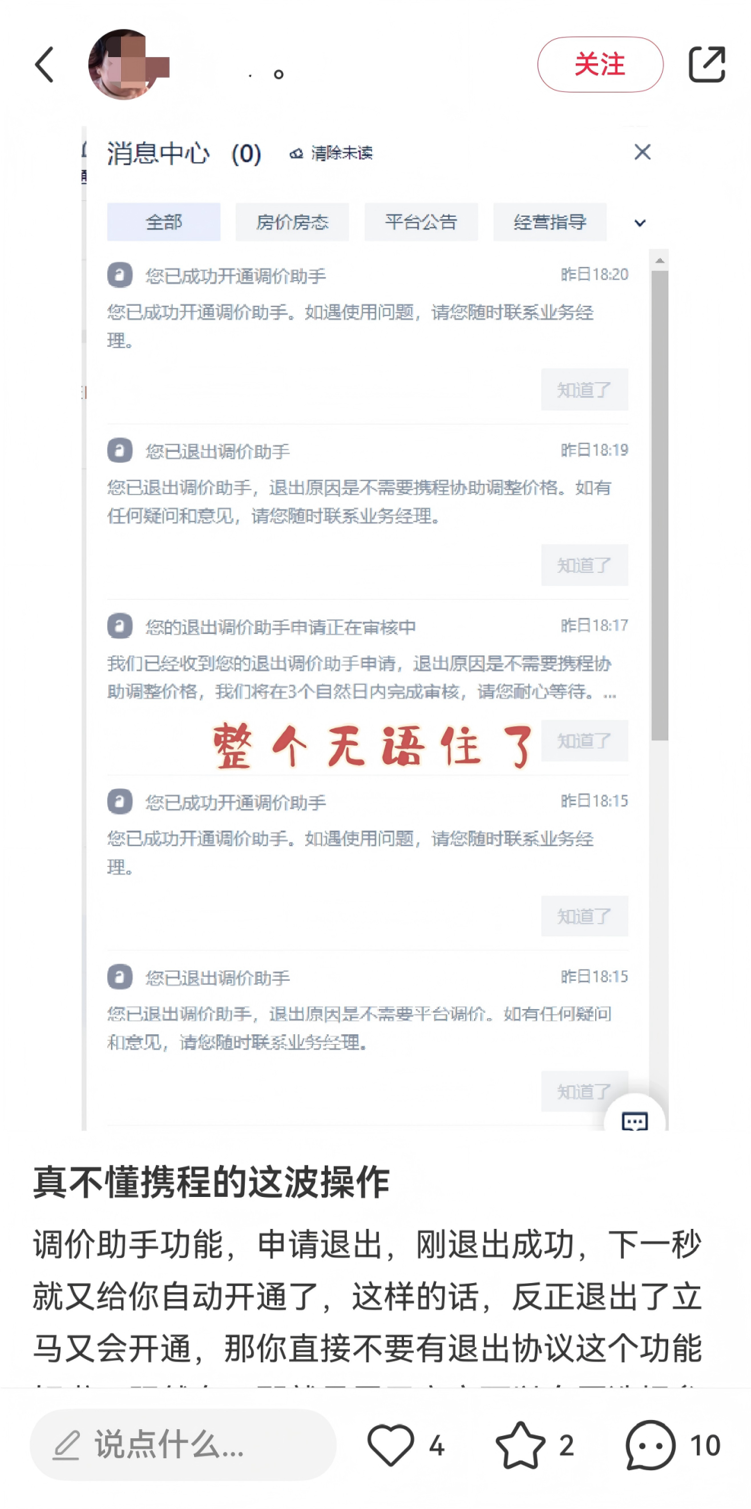 事情起因于此平台的“调价助手”功能。这个听起来像是帮忙的工具,却成了许多酒店老板的噩梦。