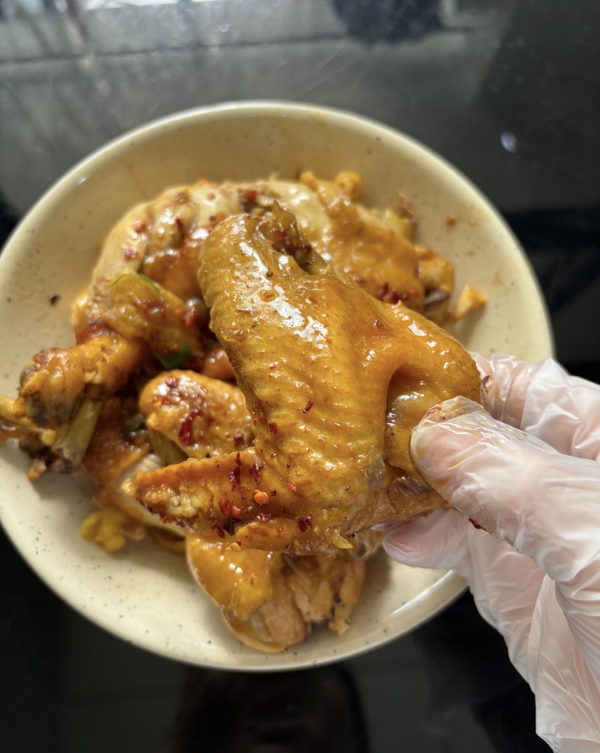 撕下一只鸡腿,热气腾腾。先尝鸡皮,咸鲜中带着微妙的香料回甘,口感是意想不到的Q弹,绝非软烂。再咬鸡肉,汁水丰沛到几乎要在口中迸溅,调味已然深入肌理,每一丝纤维都饱含着洋葱的甜、香料的暖与酱香的醇。直接吃已然极美,若将那锅底的浓缩汤汁淋一些在鸡肉上,或是拌入米饭,更是能将鲜味提升到另一个层次。