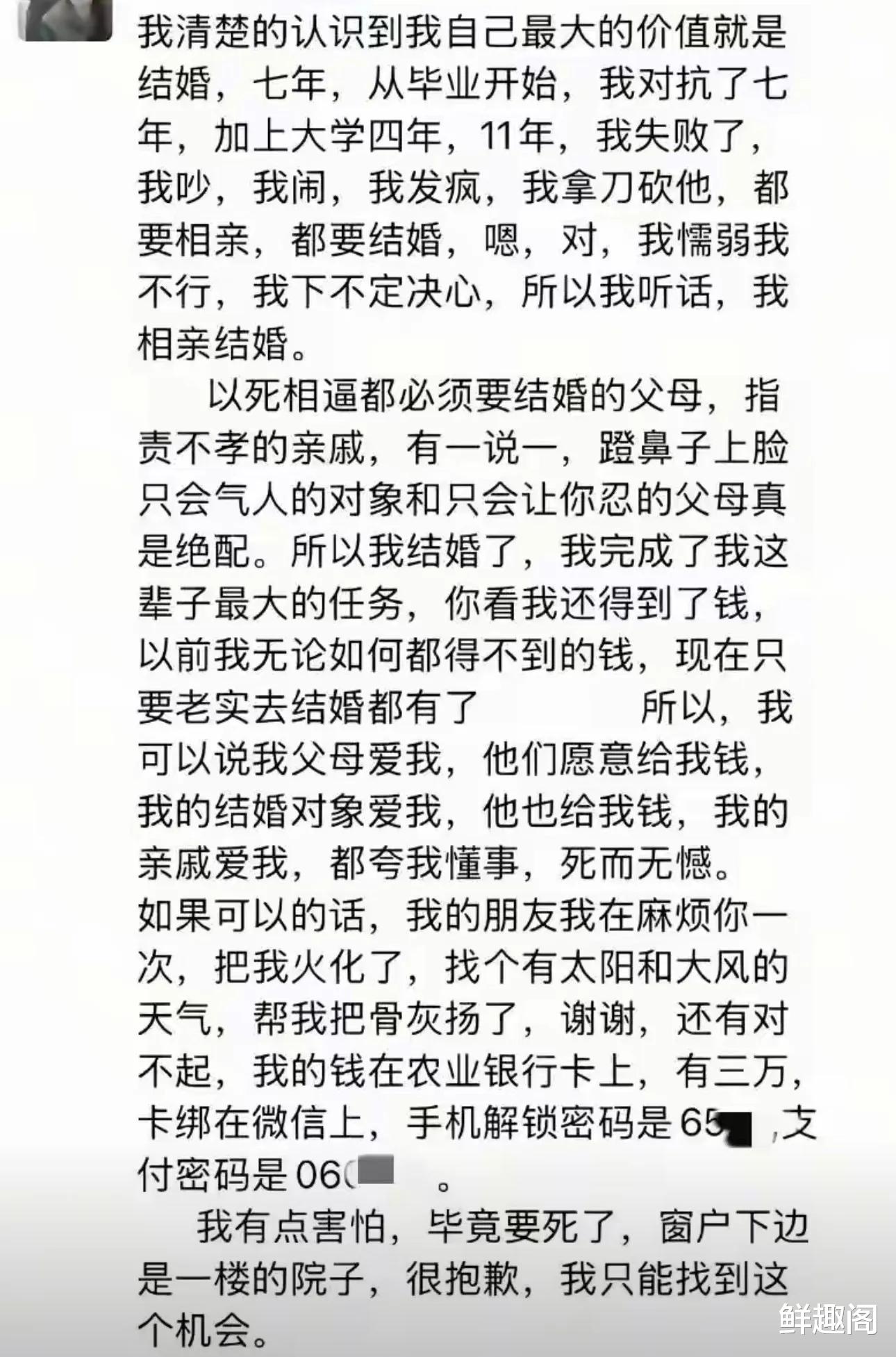 这是一件让人悲伤的悲剧,希望所有人都通过此事能够重新审视自己的爱情观和婚姻观。也希望所有家长,不要在婚姻方面给子女施加压力。最后,我们希望逝者安息!