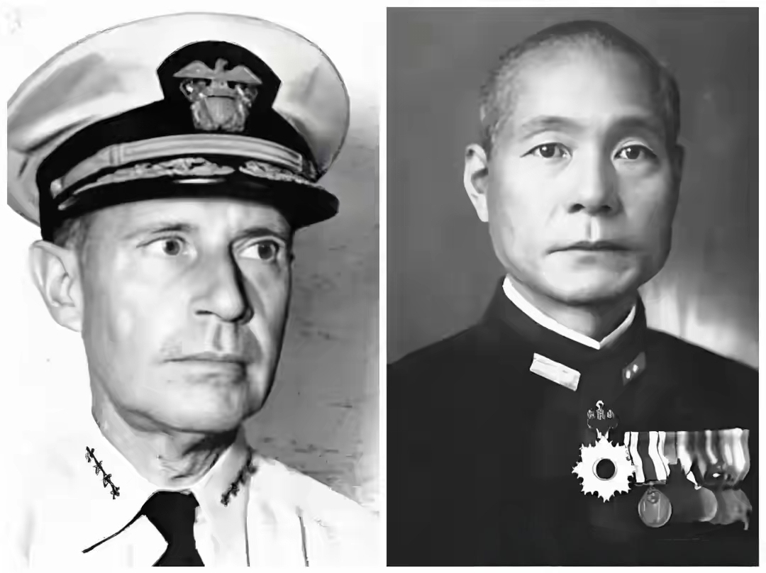 对决的双方指挥官斯普鲁恩斯(左)与小泽治三郎(右)