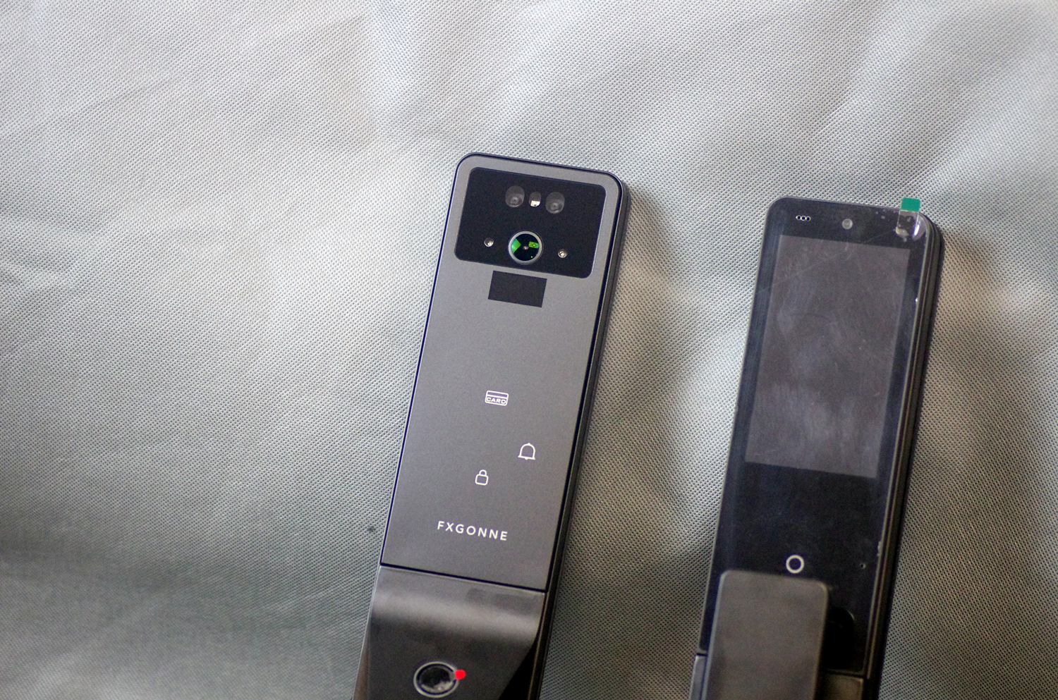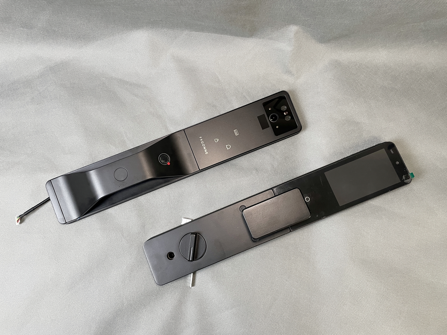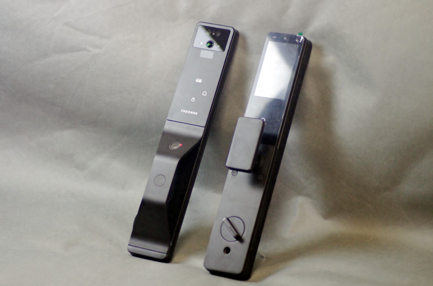 室外面板自上而下布局:双摄+红外夜视+雷达阵列、数字密码键盘、指纹识别区,功能区划分清晰,操作逻辑符合人体工学,老人小孩都能快速上手。