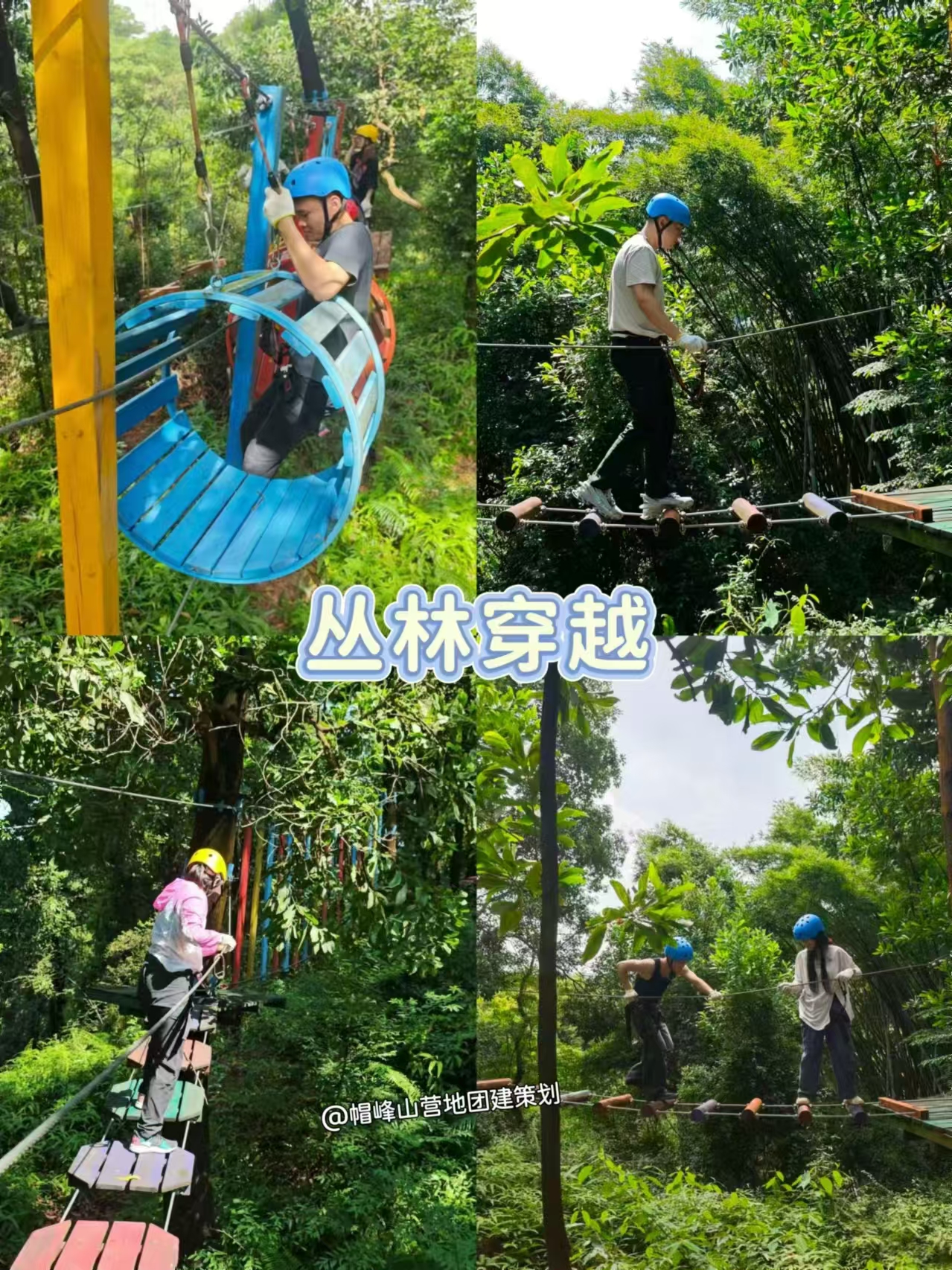✔️ 丛林穿越 :高空索道、林间吊桥12个关卡,分组竞速闯关超刺激!队友互相加油打气,拘谨感瞬间消失,同事秒变战友,凝聚力up up📈 全程专业教练护航,安全又放心~