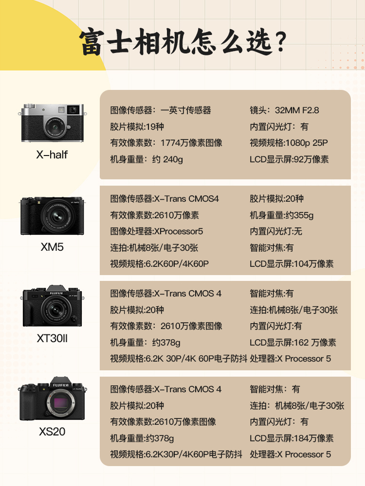 大家好!作为富士相机深度用户,今天为想入坑的朋友整理了一份2026年全阶段选购指南,从新手小白到专业创作,帮你精准避坑,选到最适合的机型!
