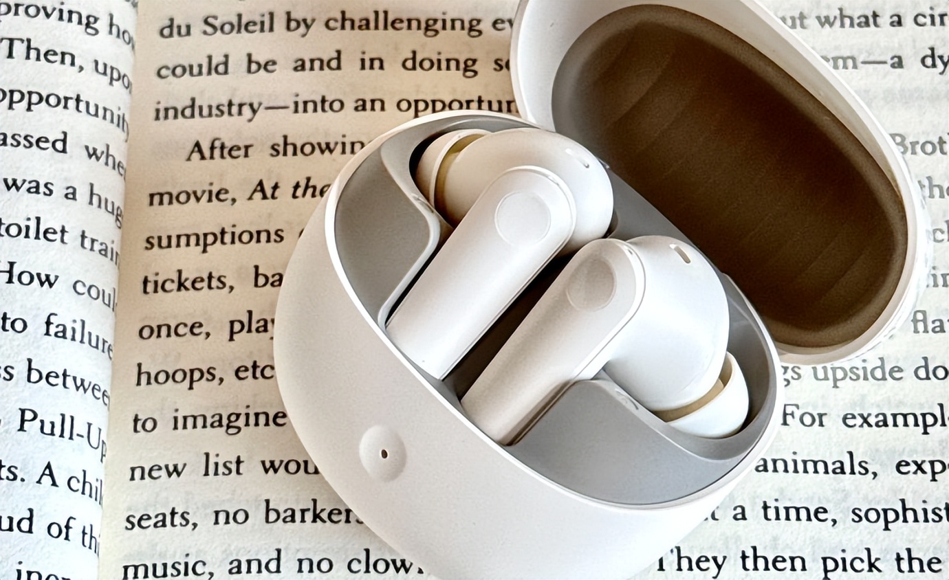 音质方面大容积后腔体的声学架构,低频下潜得够深,有力量感,高频不刺耳,中频的人声也清晰,10mm的超线性动圈单元瞬态响应快,失真低。6麦的AI通话效果更是清晰。仿生的结构佩戴舒适高,三种尺寸的耳帽和不同的耳型也贴合。续航是45小时,还有双设备连接更便捷。