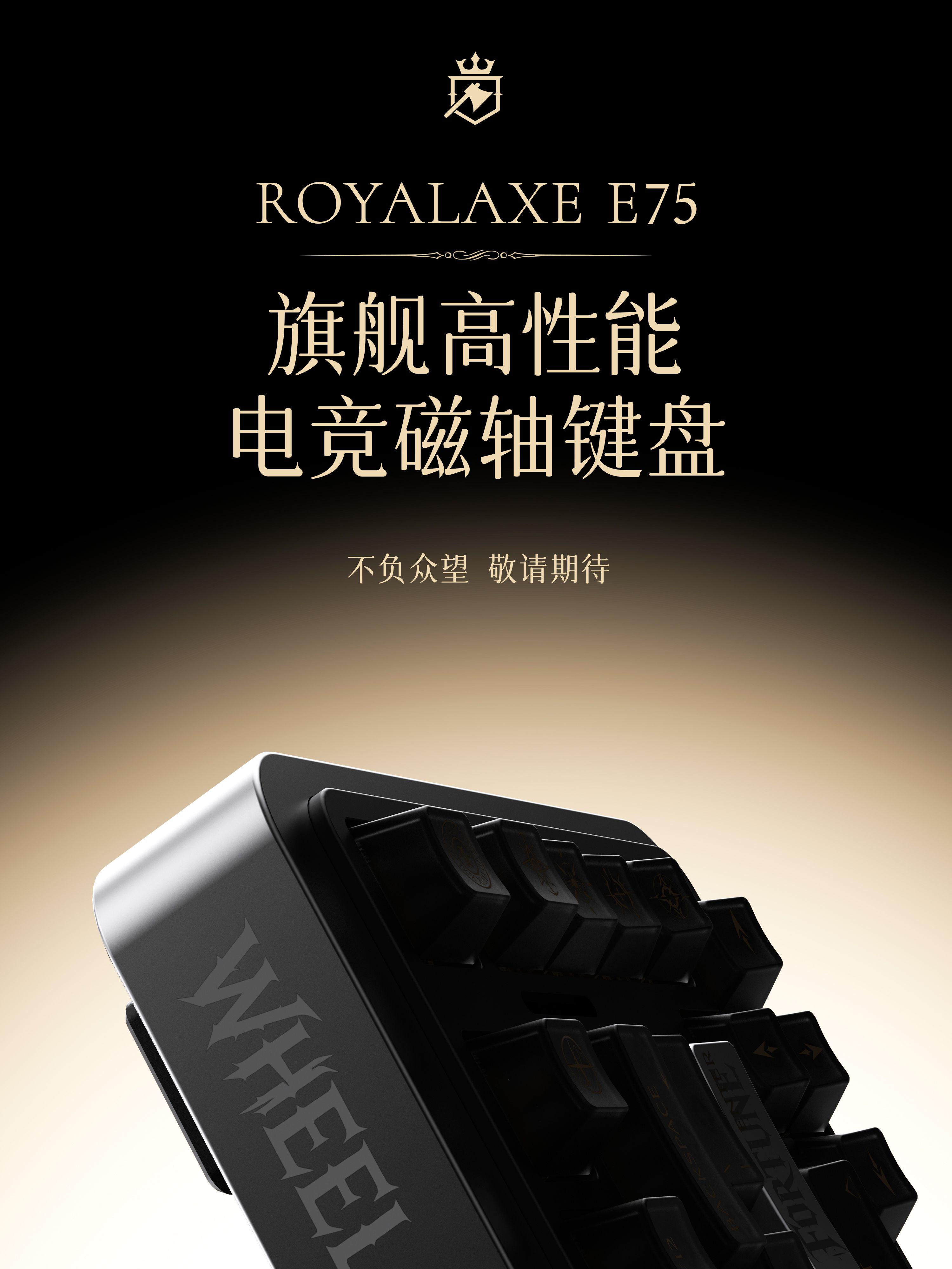 一.神秘面纱:E75的设计语言与品牌传承从宣传海报来看,御斧E75延续了品牌一贯的精致工艺与低调奢华的设计风格。黑色键帽搭配金色元素,整体质感向高端客制化键盘看齐。键盘局部展示的“WHEEL”标识暗示可能配备了多功能控制旋钮,这一设计在御斧此前产品中已得到验证,能够快速调节音量、亮度等参数,提升使用效率。ROYALAXE E75的命名规则与御斧现有产品线保持一致,E系列可能代表“Elite”(精英)系列,定位高于常规产品。数字75表明采用了75%配列,在保留常用功能键的同时,最大限度节省桌面空间。海报中的“不负众望 敬请期待”透露出御斧对这款产品的自信。考虑到御斧XL98在市场建立的良好口碑,E75很可能在细节做工和用料上再次提升标准。
