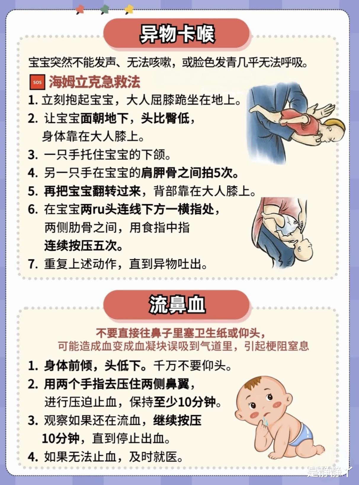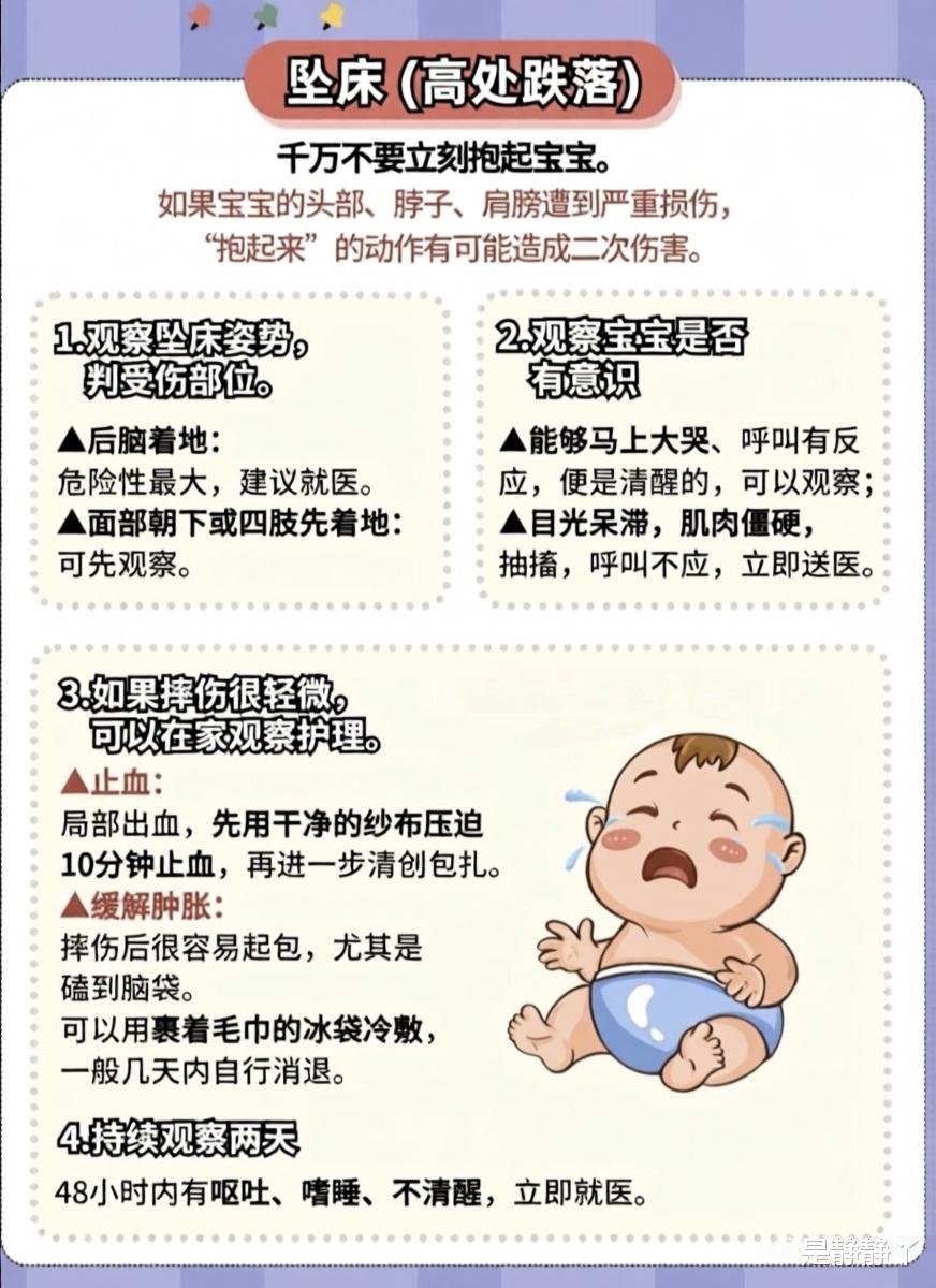 家有萌宝,最怕意外突袭。当宝宝不小心从床上跌落、被食物卡住喉咙、流鼻血或烫伤时,新手爸妈常常手足无措。其实,只要掌握正确的急救方法,就能在关键时刻为宝宝争取宝贵的救治时间,避免二次伤害。