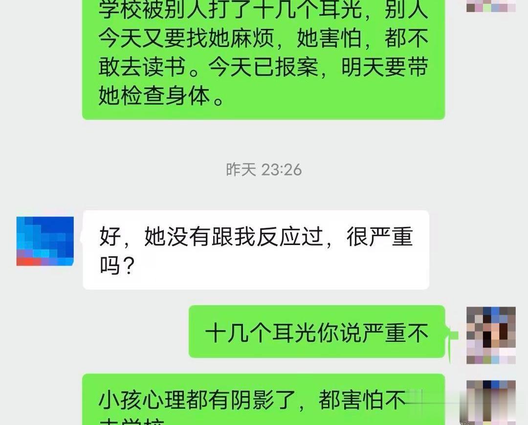 他们也不是没找学校反映情况,学校那时候给胡女士回复,说打人的龙某已经休学了。不过后来龙某和她家人还是被叫到学校了。孩子家属当场就报警了,有没有流于形式谁也不好说,但至少程序算走上了正轨。