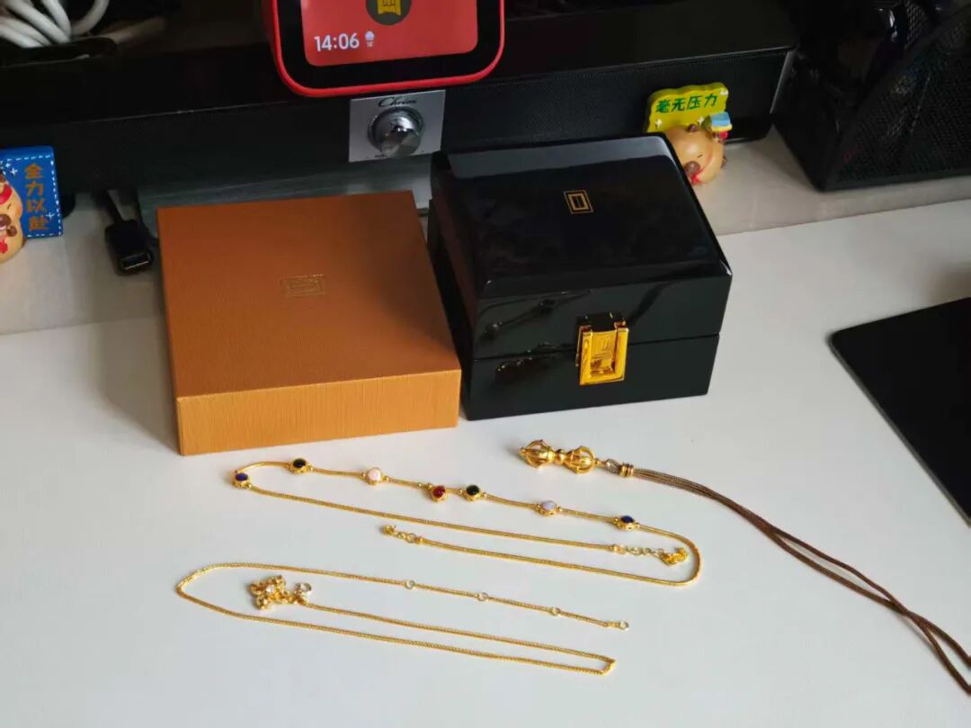 年底顺便盘点一下自己买的黄金饰品涨幅,去年618到今年8月底,我买了三套金项链送媳妇,对老婆好的男人运气总不会太差。