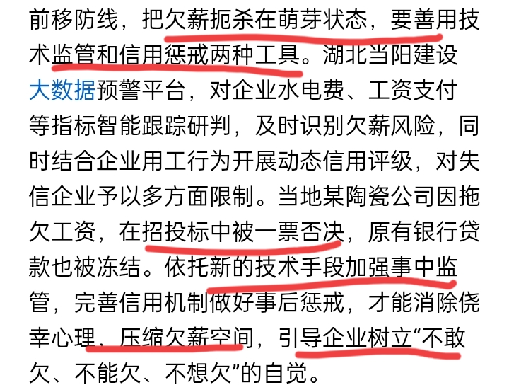 另外一个工具是信用惩戒,有地方直接把这些欠薪的公司直接与工程的招标挂钩,如果是出现欠薪的竞标公司,会在招标的过程当中被重点关注是否符合中标条件,通过这样的方式倒逼这些企业“不敢欠”!