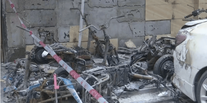 1月5日22:40左右,浙江海宁翁埠村罗化庵一民房内,租客为图便利,私拉乱接电线给电动自行车充电,充电过程中突发火情。现场人员第一时间开展灭火,火情暂时得到控制,但由于电动自行车起火后残留温度过高,未能彻底降温处置,随后再次引燃旁边停放的其他电动自行车,火势迅速蔓延至一旁的后辅房,导致辅房与现场停放的8辆电动自行车被烧毁,造成财产损失,所幸无人员伤亡。