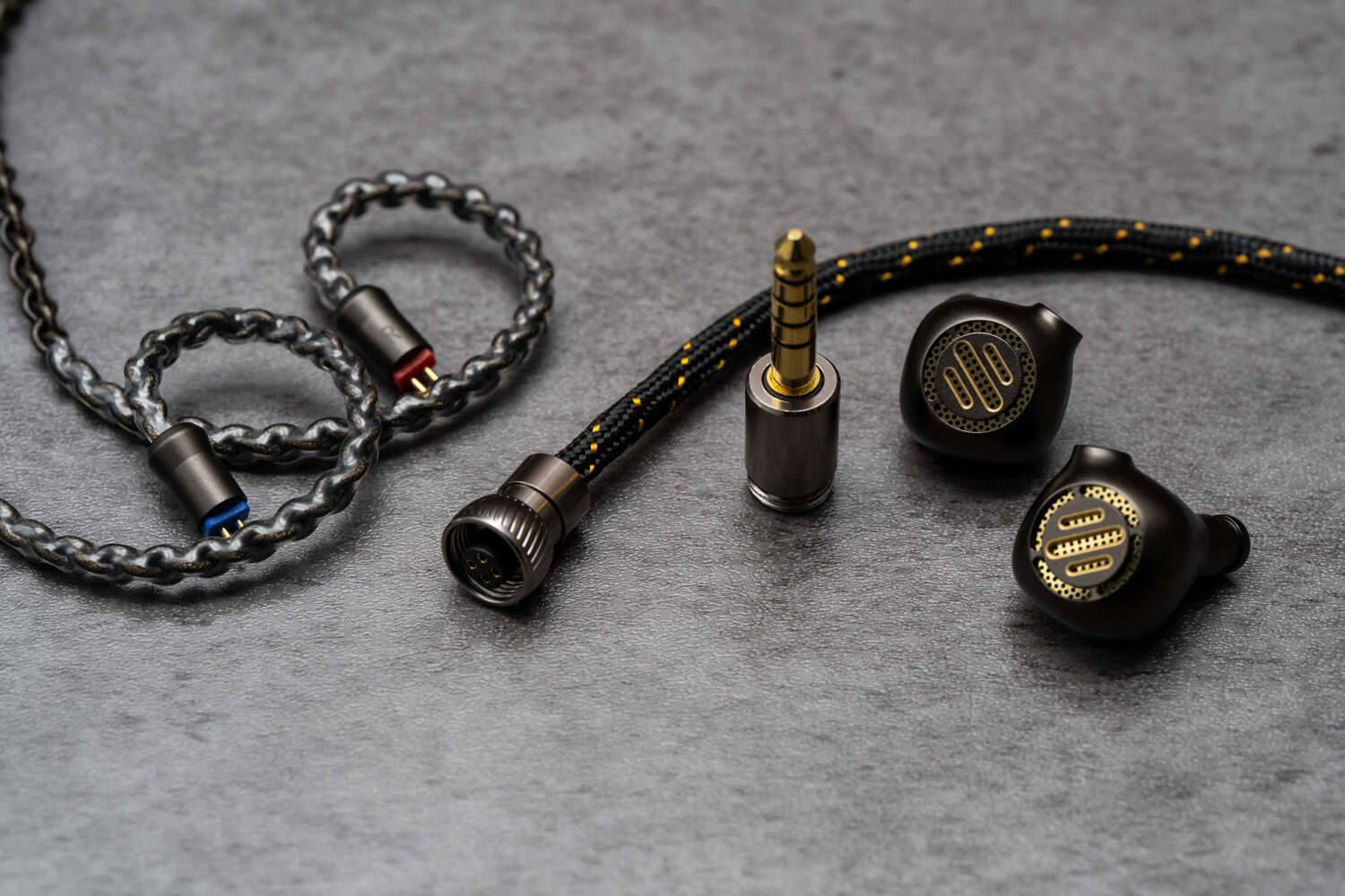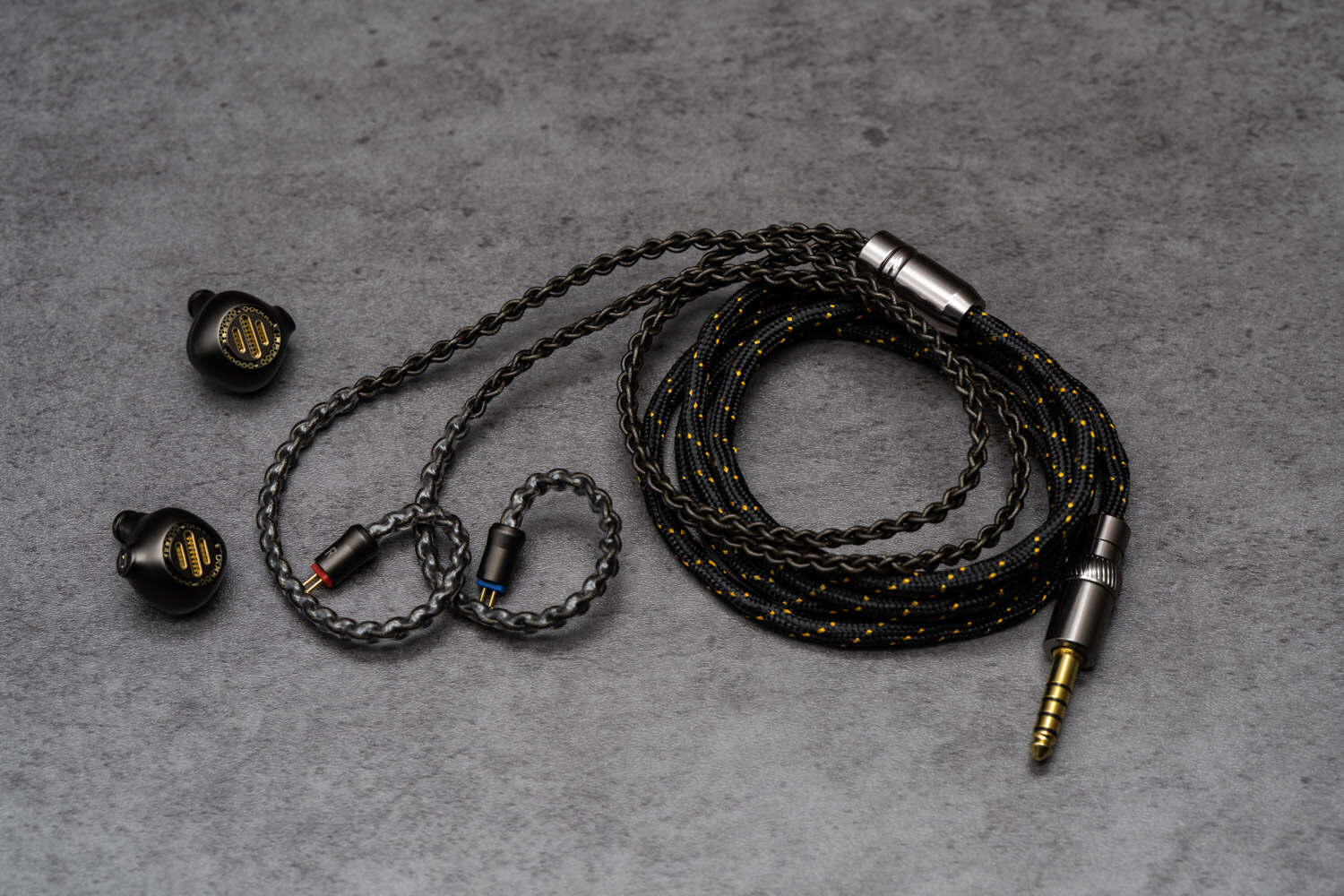 包装配件方面是这个价位的常规操作,内外空间利用有序,整体体积不大。MG200的收纳盒带点复古感,是可以上下分离的圆形金属盒。耳套很大方地给了四套,在声音风格与佩戴舒适度上尽可能提供适合烧友的选择。标配8股银箔丝线材,外层为带黄色斑点的黑色编织层,耐用度OK,五金件简洁大方。这里有点神奇的是MG200原线配置了可换插头方案却仅提供了4.4mm的可换插头,目前官方店购买MG200后晒单有赠送3.5插头+收纳包或SE100耳套(二选一)的活动。
