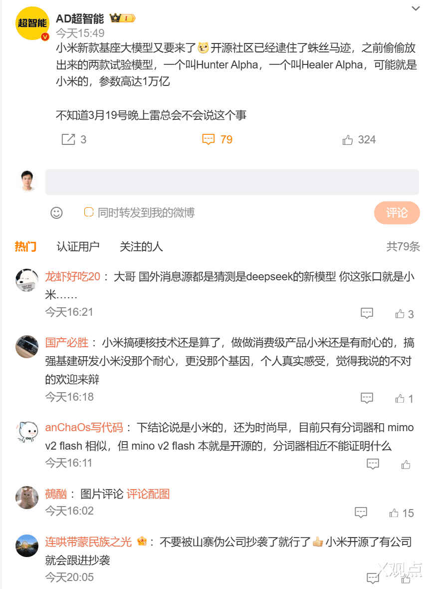 💬 互动问题:你觉得Hunter Alpha和Healer Alpha的幕后,最有可能是哪家公司?匿名发布这种策略,是天才营销,还是另有隐情?