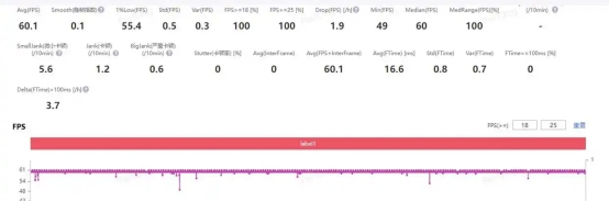 高负载的《原神》半小时测试下平均帧率60.1帧,1%low帧来到55.4帧,虽有轻微波动但整体流畅,有效控制机身发热,半小时后机身背面最高温度43.3℃;