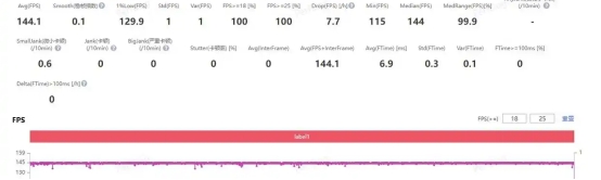 《王者荣耀》开启144Hz极致画质,平均帧率能达到144满帧,技能释放与画面响应同步率高,25℃室温环境下连续两局平均帧率依旧稳在144帧。
