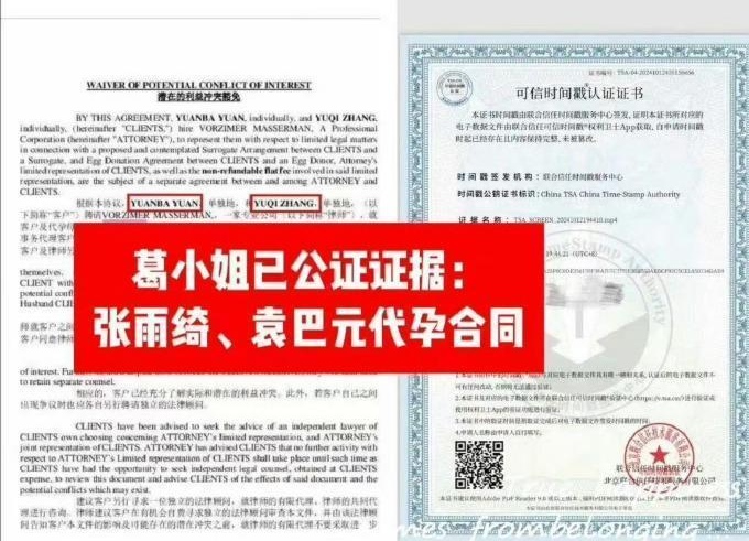 葛晓倩不仅晒出了公证过的张雨绮和袁巴元的代yun合同,并且还曝出了张雨绮两个孩子的护照信息作为自己爆料的证据。
