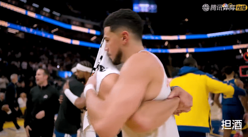 比赛结束,库里走入场内,一把抱住走过来的布克,两人拥抱致意,还简单聊了两句,两人私交很不错的。