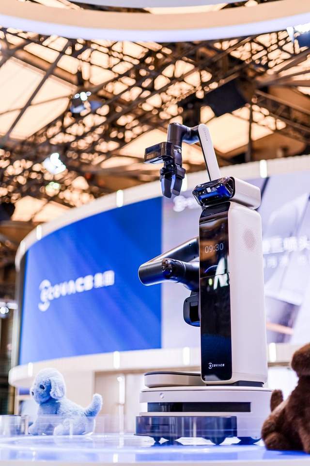 具身智能的核心,在于让AI拥有物理实体的承载,使其能够感知复杂的现实世界并进行类人、类生物的精准交互。在科沃斯展台核心的具身智能展演区,前沿产品清晰勾勒出服务机器人从“工具”到“管家”再到“伴侣”的演进路径,能直观感受到具身智能技术落地家庭生活的真实模样。