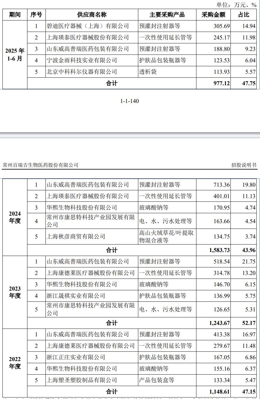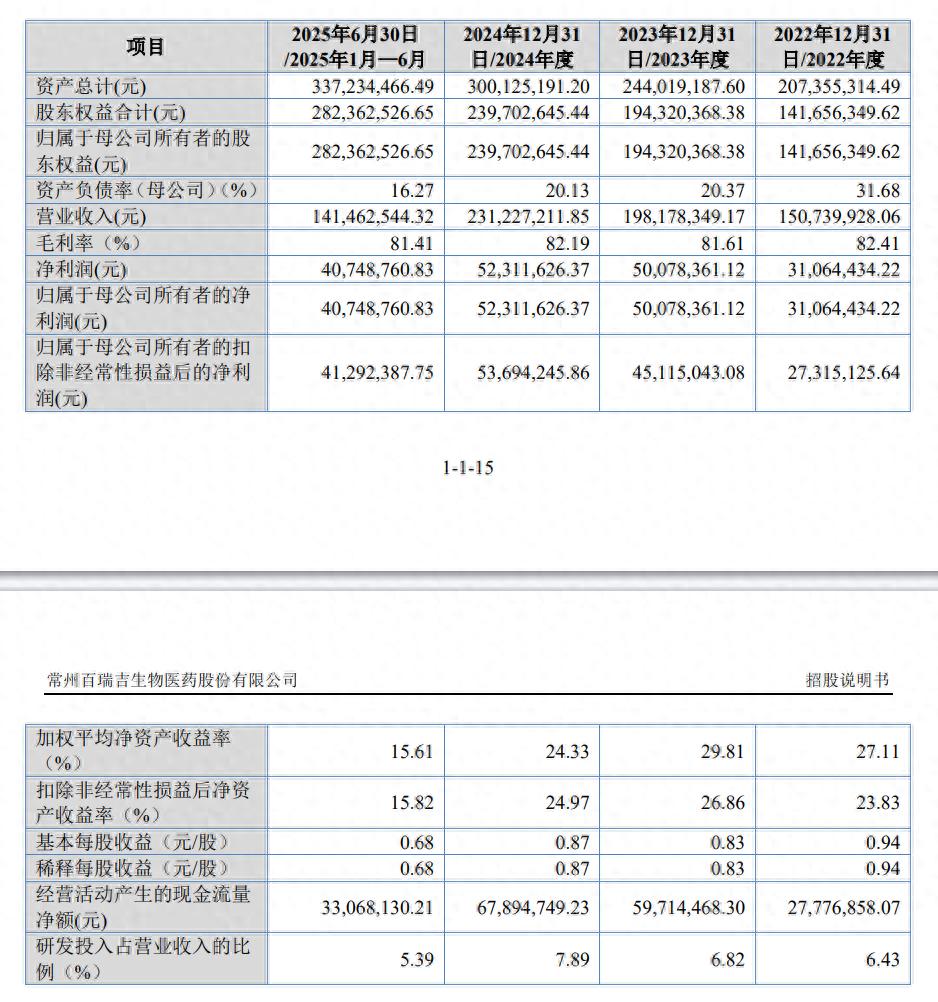 报告期内(2022年至2025年上半年),百瑞吉的营业收入分别为1.51亿元、1.98亿元、2.31亿元、1.41亿元;净利润分别为3106.44万元、5007.84万元、5231.16万元、4074.88万元。