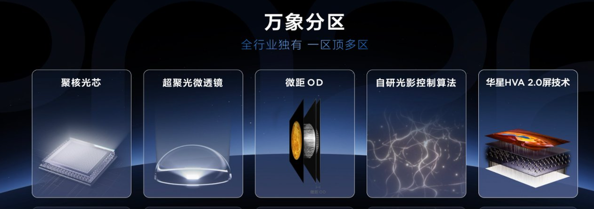 旗舰技术下放,价格打下来体验不打折它采用的是跟旗舰同源的SQD-Mini LED技术,这是一套同时满足高对比度、高色域、高峰值亮度的完整方案。