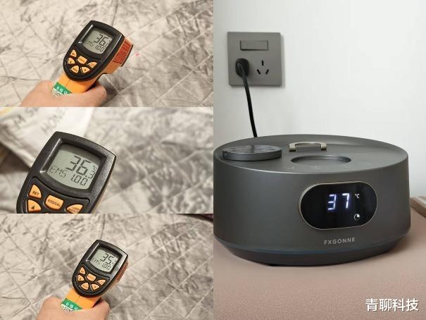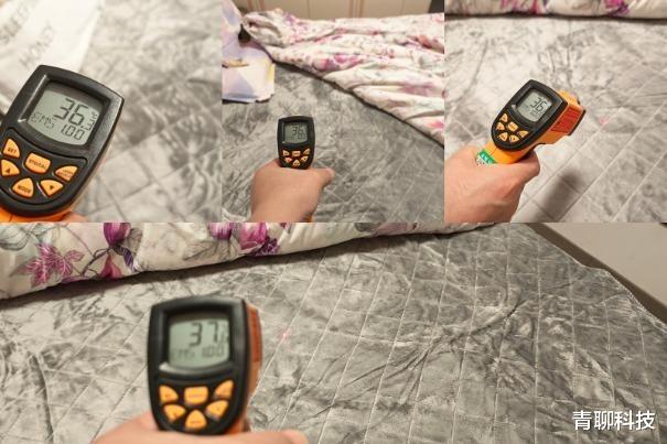 我提前把水温调到38℃以后,睡觉前特意测量了毯面不同位置的温度:靠近进水口处为37℃,而最远端也有36℃,大部分位置都在36~37℃之间,温差不到2℃。整夜体验下来,被窝里始终保持着均匀的温暖,再无往日的“冰火两重天”。