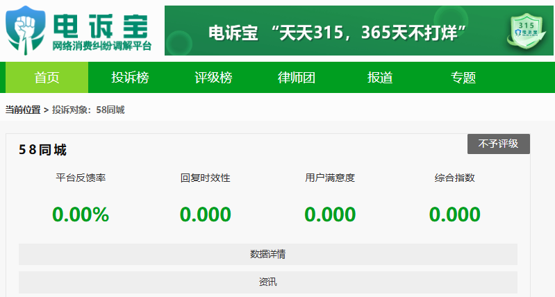 10月21日,山东省的刘先生向“电诉宝”投诉反映,其于2025年5月10日接到北京58同城分部业务员电话,对方以“公司内部活动”为名,诱导其支付4000元开通泰安地区会员账号,承诺赠送90天“天天展位”推广服务及1482元账号余额,并称权益数日内到账。但截至2025年10月,所有承诺均未兑现,业务员电话不接、微信失联。刘先生认为此举已构成虚假宣传,要求58同城总公司按“退一赔三”标准处理。据悉,该平台多次因类似促销问题被投诉。目前平台未作回应。