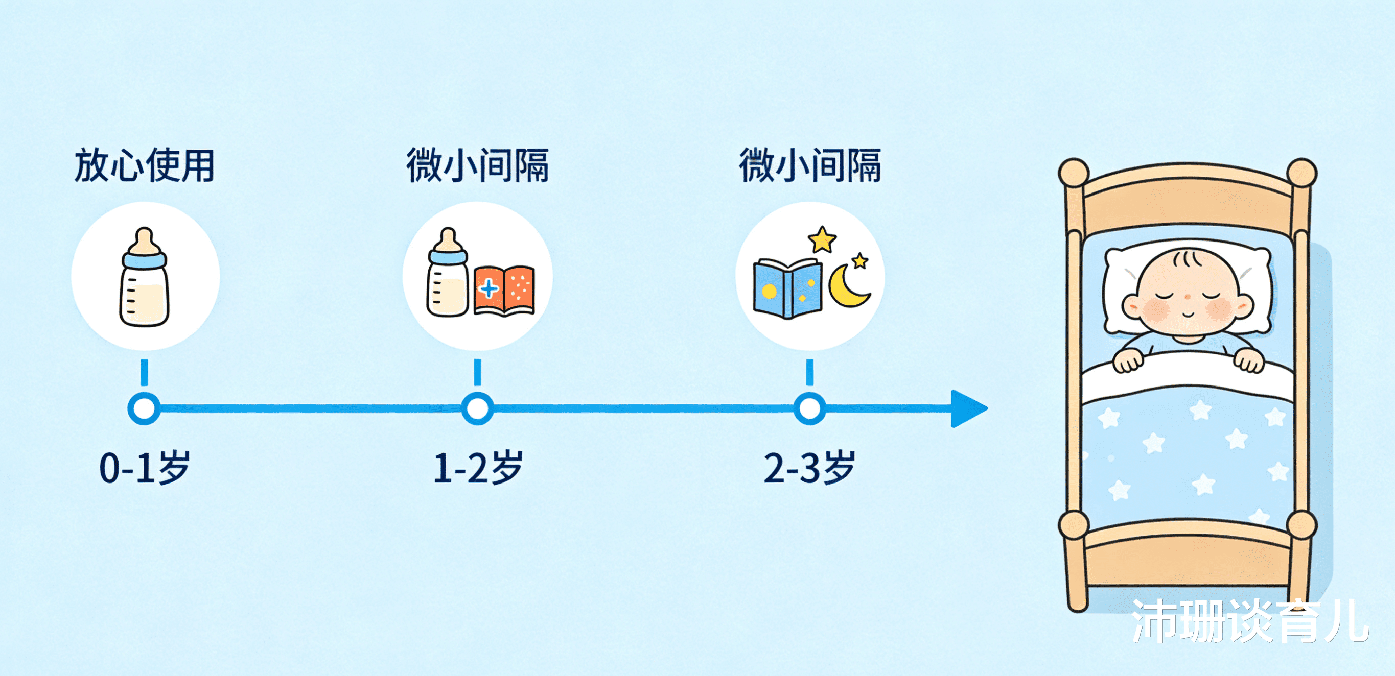 真正聪明的做法,是0-1岁放心用!这是满足宝宝需求最高效的方式。你和宝宝都能休息好,才是王道。1-2岁随着辅食添加、活动量增大,可以开始有意识地在“吃”和“睡”之间做个微小的间隔。比如“吃完奶,妈妈抱着讲本书再睡”。慢慢把“吃”和“睡”的关联松一松。 2-3岁宝宝的理解能力和自我调节能力更强了。可以用睡前仪式,用故事、聊天来代替最后一顿奶的安抚作用,自然而然地告别奶睡。