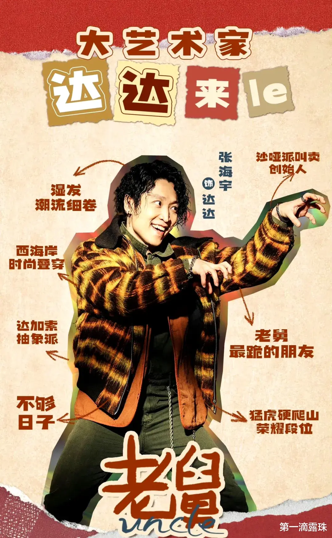 最近追《老舅》的观众,大概率都被张海宇演的纹身师达达笑到拍腿。这个顶着一头不羁钢丝卷发型、自称“艺术家”的角色,自带神经质Buff,跟郭京飞饰演的老舅做商铺邻居,俩不靠谱的人凑一块儿,简直是行走的笑点制造机。