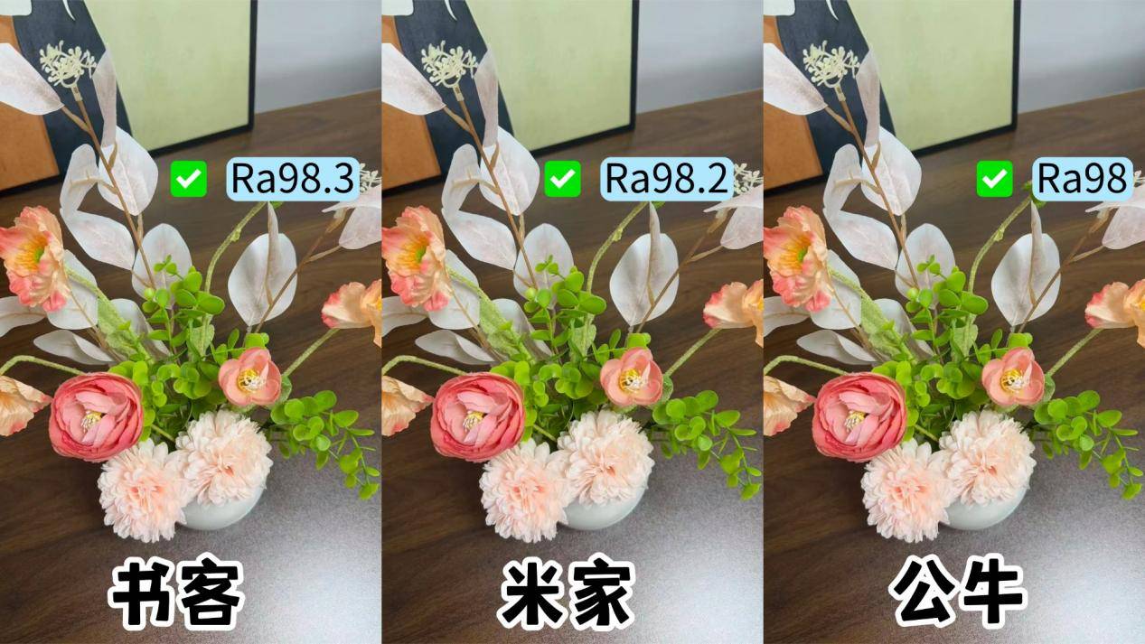 公牛ProMax:公牛是一款紫光激发全光谱护眼灯,实际显色指数在Ra98左右,还原色彩度是比较高的。